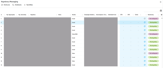 - Στη σελίδα Καμπάνιες Messaging μπορείτε να βρείτε όλες τις καμπάνιες που έχετε δημιουργήσει.