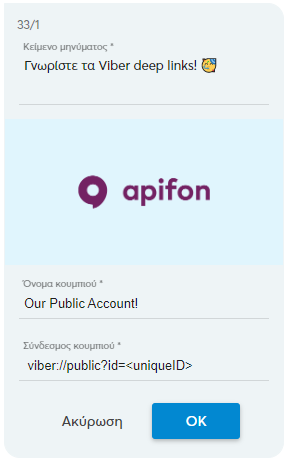 Σε αυτό το άρθρο, θα μάθετε πώς να χρησιμοποιείτε Viber Deep Links στην πλατφόρμα της Apifon.