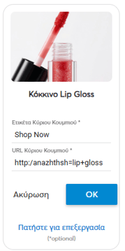 URL | Ναι (στο κουμπί) | URL ή ενέργεια όταν ο χρήστης κάνει κλικ στο κουμπί ή την εικόνα |