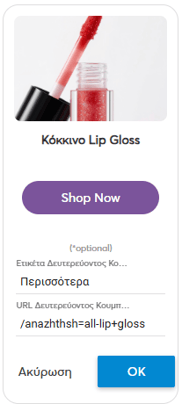 Δευτερεύον Κουμπί | Όχι | Περιλαμβάνει label & action URL |