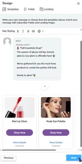 ✔ Carousel messages are ideal for product showcases, promotions, and multi-offer campaigns.