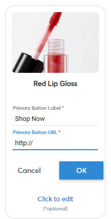 Primary Button | Mandatory | Contains label & action URL |